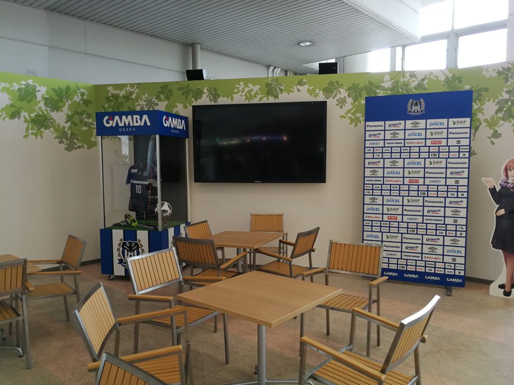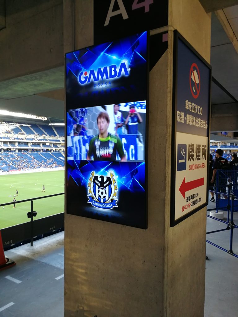 ガンバとエキスポのコラボ企画があったので、巨大なバナーが掛かっていました。