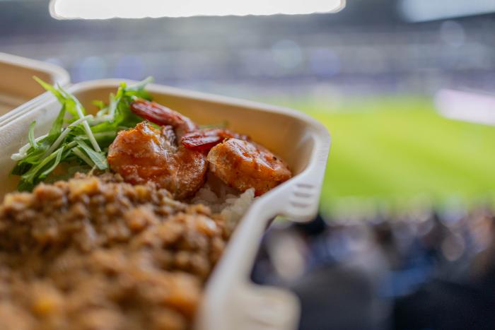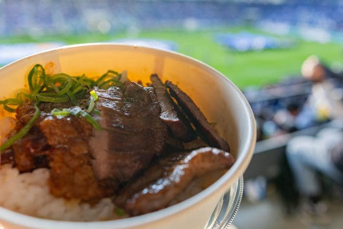丼形式なので、とても食べやすく、持ちやすくスタジアムグルメには超便利です。