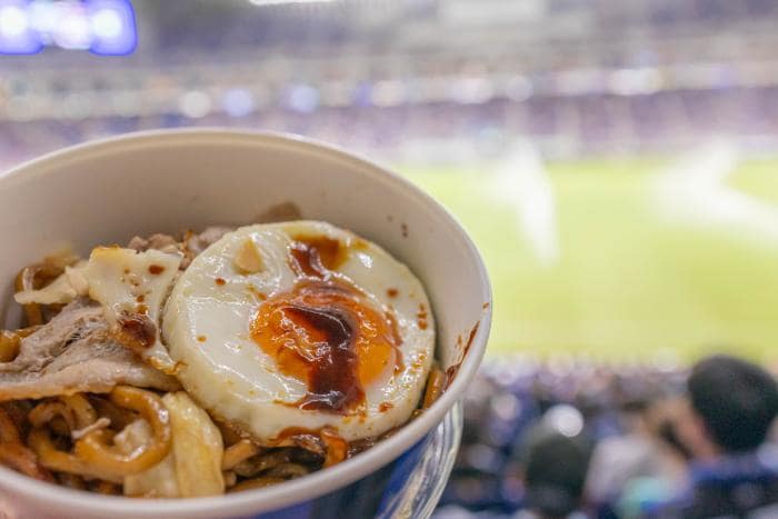 焼きそばですが、丼形式なので、とても食べやすく、持ちやすくスタジアムグルメには超便利です。